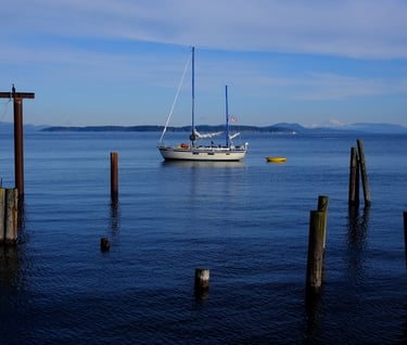 Line and form are what draw our eye and make something noticeable. The placement and metamorphosis from one component detail to another are the quintessential elements of a great picture. Boats, rocks and water in real life are a recipe for conflict but the sum of the parts when arranged properly are a revelation in a photograph. I am constantly engaged with my camera consumed in the dance of colour shape and space as I walk the shoreline of Sidney. I have lived in many places but rarely have I lived far from the sea. Indeed I have lived on four islands, Orkney, Cape Breton, Newfoundland and Vancouver Island. They all have the same common elements that make them distinct from the mainland. They are owned by the weather and the limits of passenger ro-ro car ferries, Cape Breton being the odd one out but causeways have their limits too. These physical transport limitations to normal life are always in the back of the mind. It is what makes one an islander.
